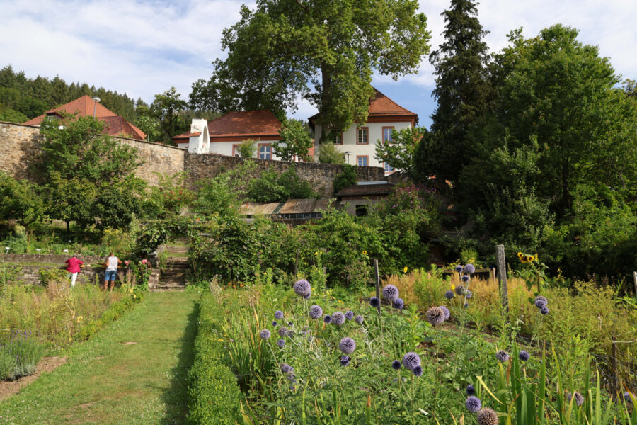 Die Bewirtschaftung erfolgt seit 1992 biologisch, bis 2014 in zertifizierter Form. Zur großen Nutzpflanzenvielfalt mit vielen alten und vergessenen Sorten gehört auch die eigene Saatgutgewinnung und Setzlingsanzucht. So konnte beispielsweise der Anbau der Heilpflanze Erzengelwurz (Angelica archangelica) wiederbelebt werden, die bereits zu Zeiten der Kartäusermönche als Exportschlager gehandelt wurde.